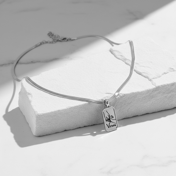 Collana snake in acciaio con rettangolo mini personalizzabile.