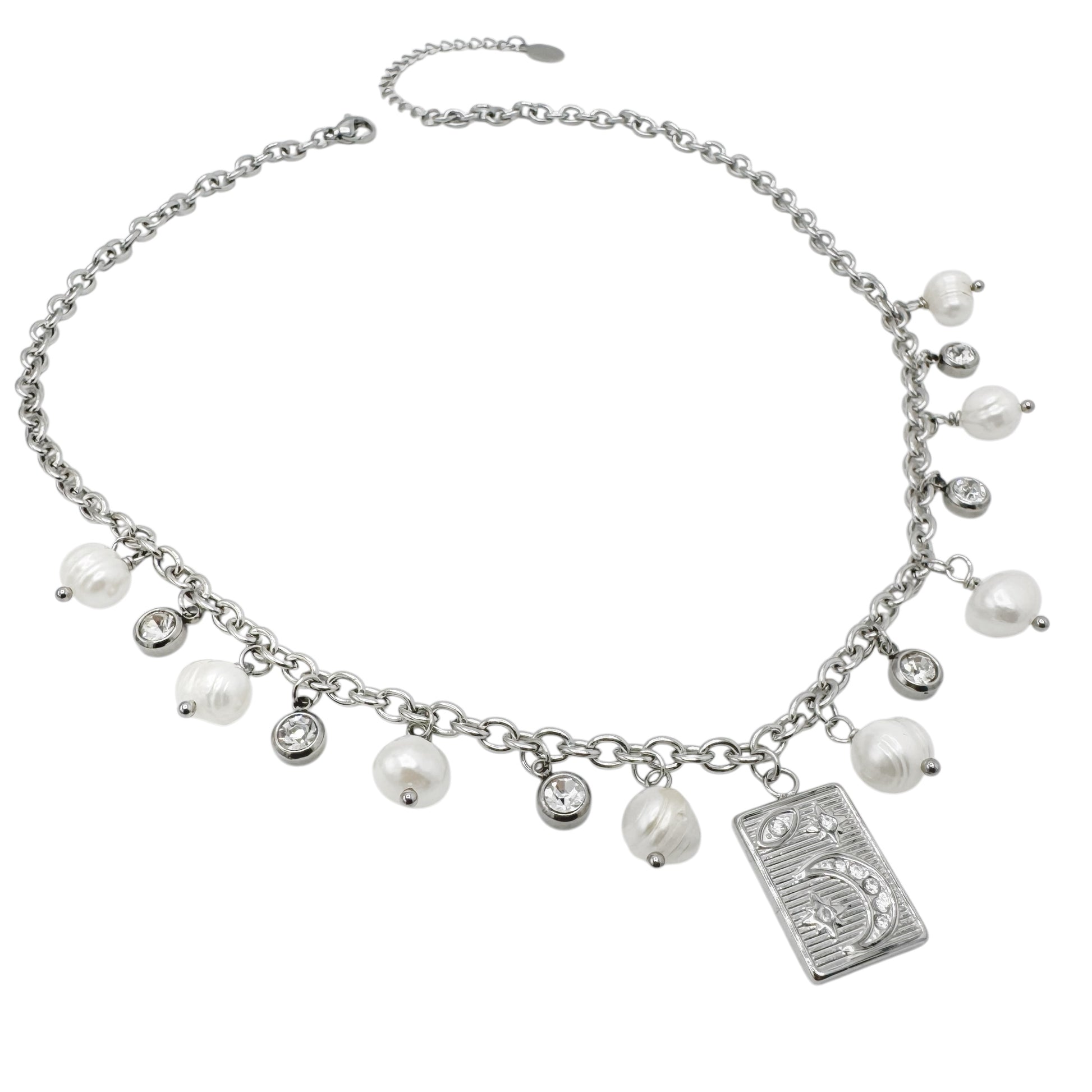 Collane in acciaio inox anallergico con perle di fiume ,charms e strass