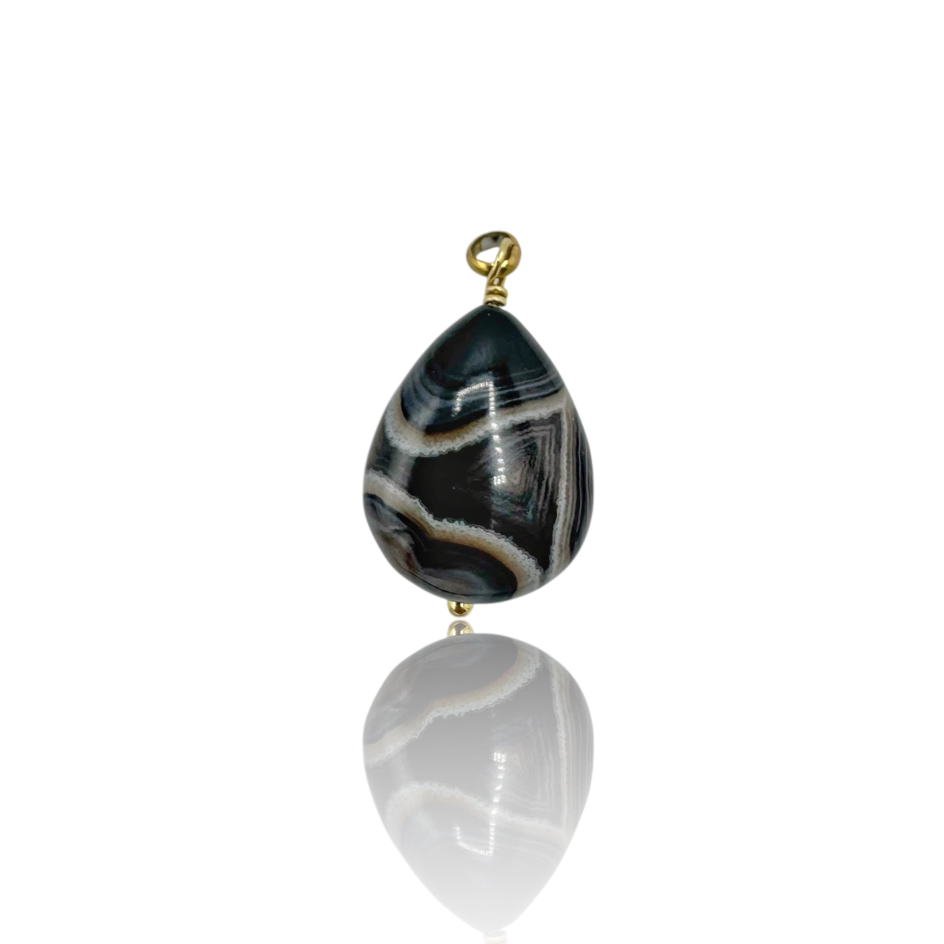 Charms singolo di pietre naturali + cordino in tessuto nero.