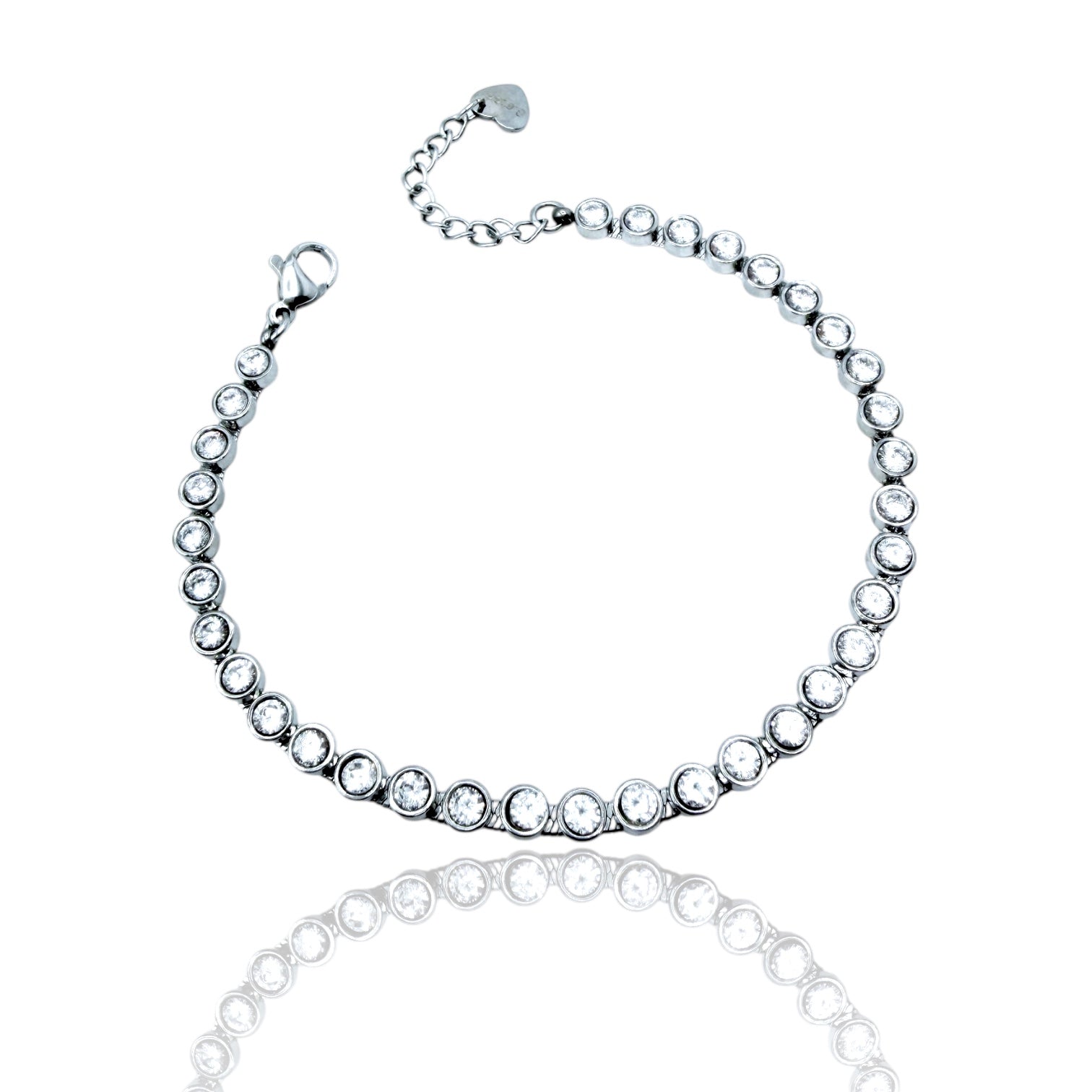 Il bracciale è in acciaio inox, misura circa 17 cm più catenina allungabile di circa 5 cm.