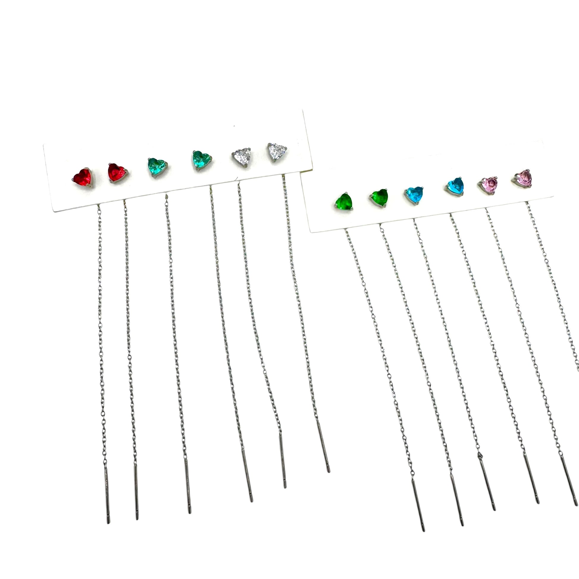 Orecchini saliscendi in acciaio inox con cuore strass colorato