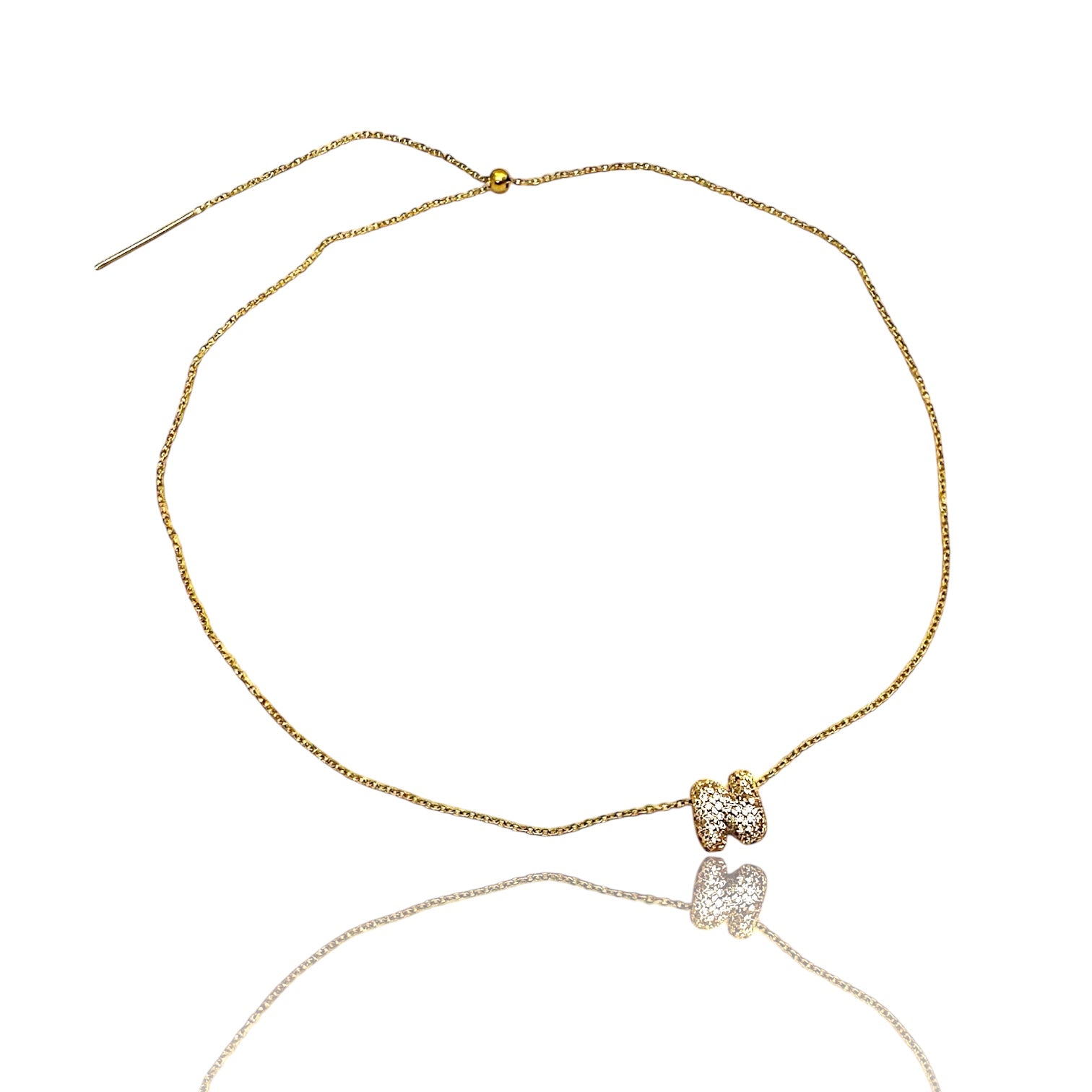 Collana saliscendi in acciaio inox anallergico + lettera con strass in OTTONE.